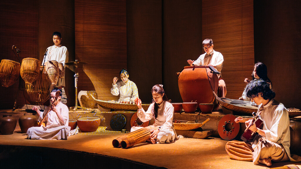 On my recent trip to Hanoi, I had the opportunity to discover GOm, and it truly left a lasting impression. I’ve seen a wide range of performances, everything from Broadway musicals and K-pop concerts, to shows by Lady Gaga and Beyoncé. I was not prepared to be transported to a realm of music GOm created. GOm transports you from the lively city of Hanoi to a tranquil village where music is crafted using ceramics, pottery, bamboo, and everyday household items…